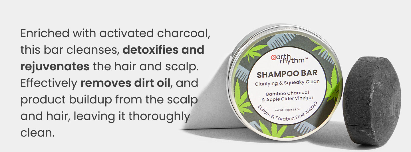 Strengthening While Cleansing : Earth Rhythm's Bamboo & Charcoal Shampoo Bar has fundamentals chosen from nature. It contains natural bamboo charcoal that strengthens the hair follicles while cleansing away build-up, oils, and contaminants. Pollutants tend to mess up the health of hair, so bamboo charcoal is an apt ingredient that cleanses all impurities and conveys goodness to the scalp. Natural Bamboo Charcoal has natural hair strengthening properties that work cent percent in making hair follicles stronger than ever. Henceforth, choose this uniquely formed shampoo bar for treating your scalp and hair strands.