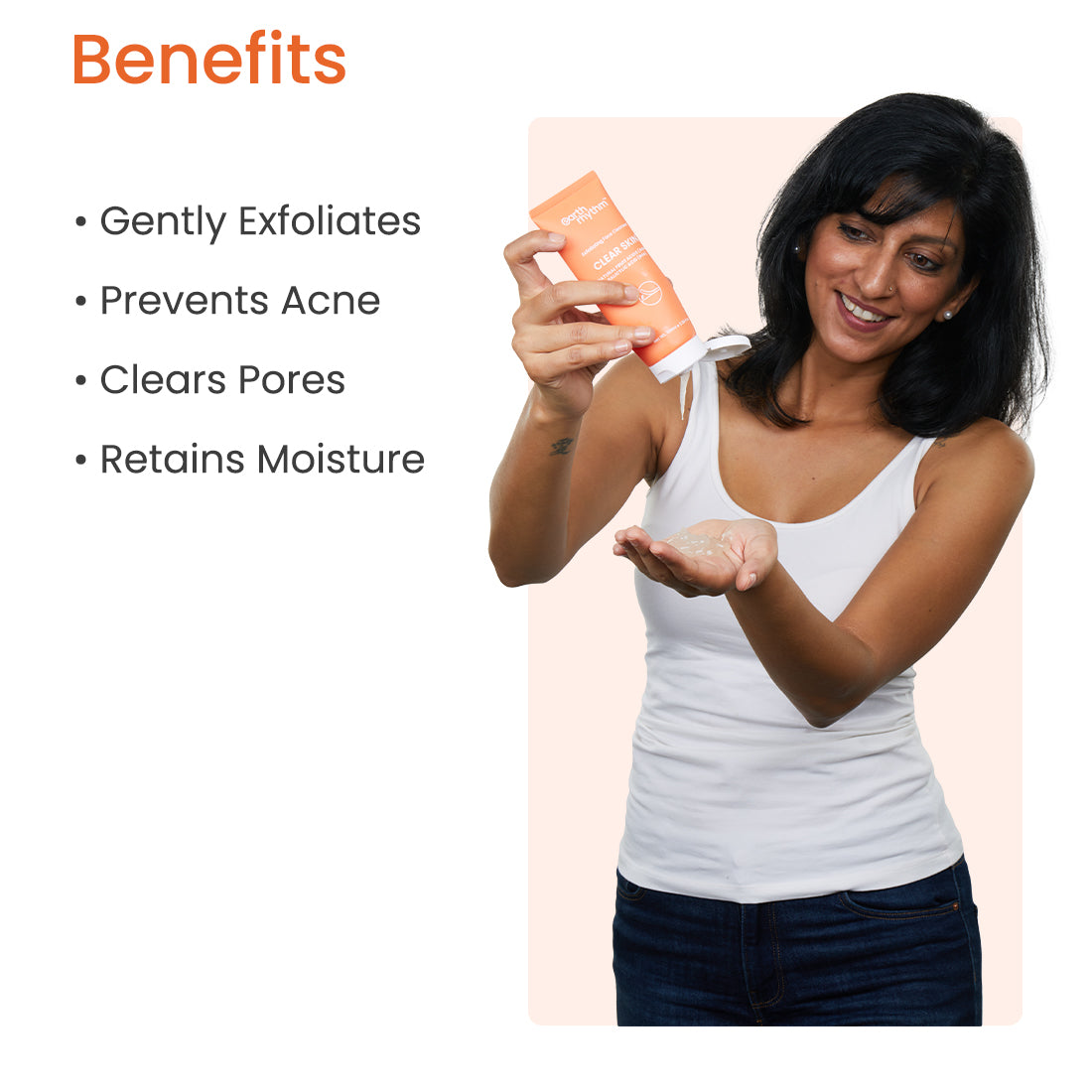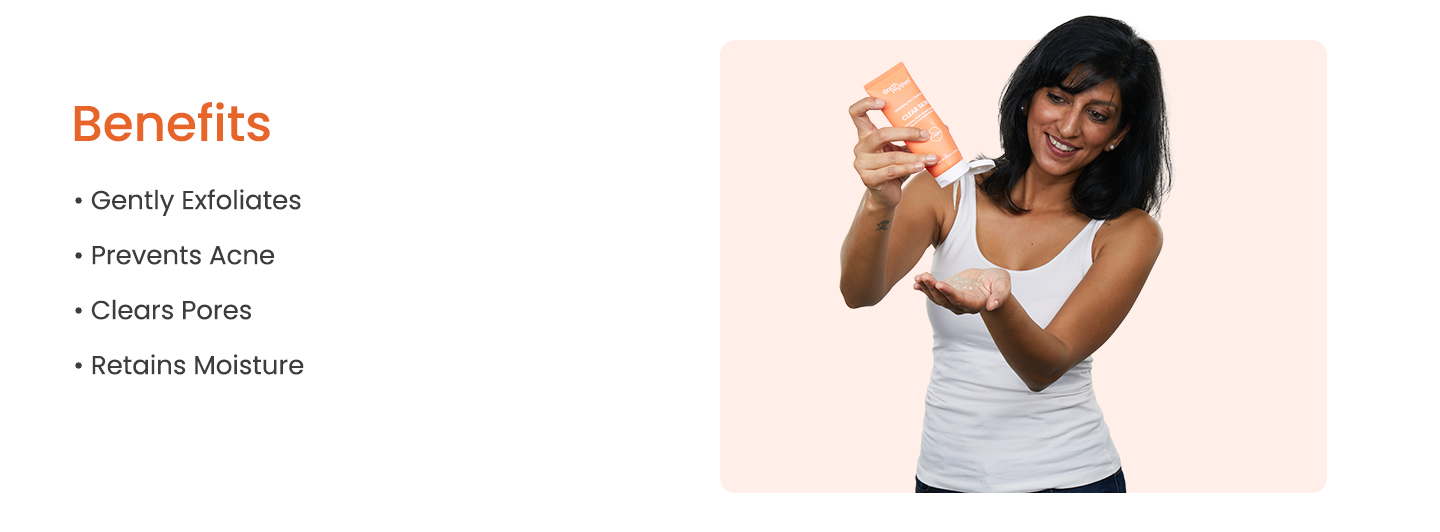 An exfoliating cleanser removes dead skin cells and impurities for smoother, brighter skin.