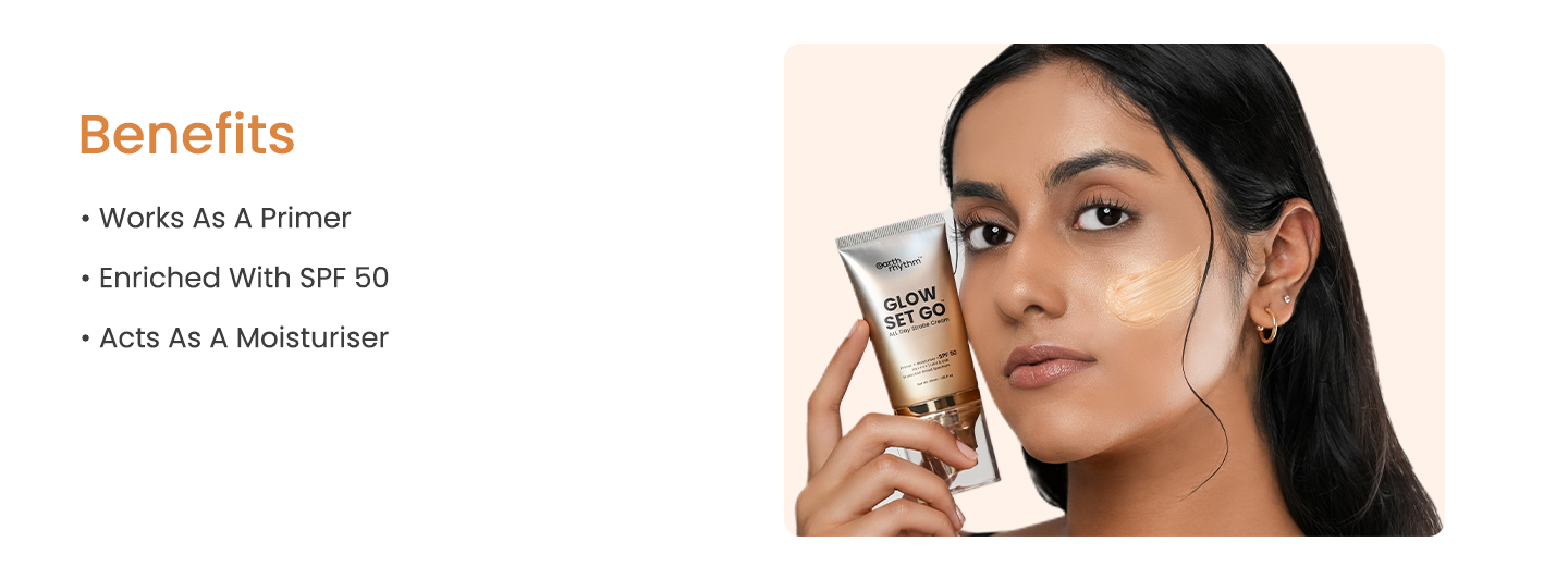Since strobing is an IT trend in the makeup industry, Earth Rhythm introduced the Glow Set Go Strobe Cream with SPF 50+. Being available in three different shades, Pearly Glow, Golden Glow, and Bronze Age, this glowing skin cream is designed to offer an illuminating glow to the skin. As the current makeup industry is vouching for the goodness of skincare in makeup products, this strobe cream for the face works as a primer and has SPF 50+.