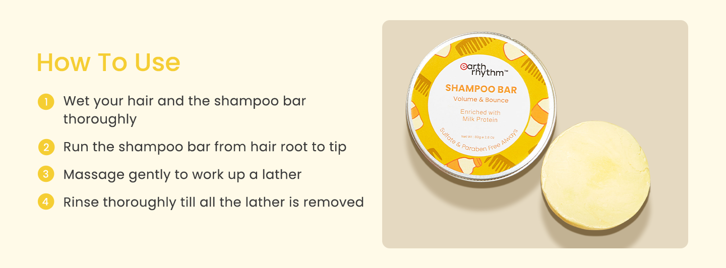 - Use the shampoo bar twice or thrice a week or as required to keep your tresses and scalp moisturized, healthy, strong, and volumized.