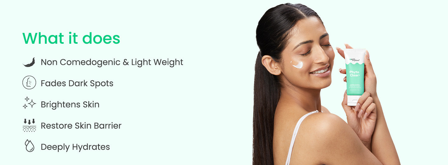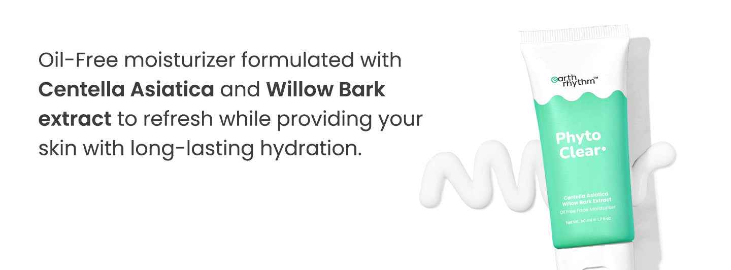 It's necessary to moisturize your skin every day, but there's one more vital task—hydration. Drinking water is not enough and you have to select the correct moisturizer that suits your skin's health. Earth Rhythm's Phyto Clear Oil-Free Moisturizer is the best as it hydrates your skin as you apply it. Packed with Centella Asiatica, a plant containing 'Madecassoside' which is a rich source of Amino acids is known for hydrating the skin. This hydrating ingredient soothes compromised skin. The face care moisturizer locks in moisture and provides utmost hydration. It creates a natural moisture barrier over the surface of your skin. Hence, the scorching heat doesn't affect your gentle skin and it stays protected from losing moisture.