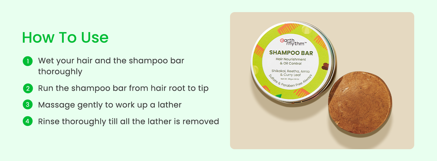 You should switch to Earth Rhythm Shikakai, Reetha, Amla and Curry leaf shampoo bar because it is plastic-free eco-friendly, and made using high-quality natural ingredients. It is completely handmade to achieve the best quality. This solid shampoo bar by Earth Rhythm is sure to naturally restore and treat your hair to bring back its original shine and sheen without stripping it, while the extra added conditioner effect in this shampoo bar will make your hair soft and light, which makes them easily manageable. There has been no use of chemicals or preservatives that can damage your hair, while our packaging is 100% biodegradable and recyclable! The shampoo has a high affinity with the hair fibre, repairing damaged strands and recovering hair’s natural elasticity. It also creates a strong nourishing, protective shield over your hair that helps protect and control the unmanageable frizz while restoring your natural sheen and softness to keep even the most unruly hair at bay.